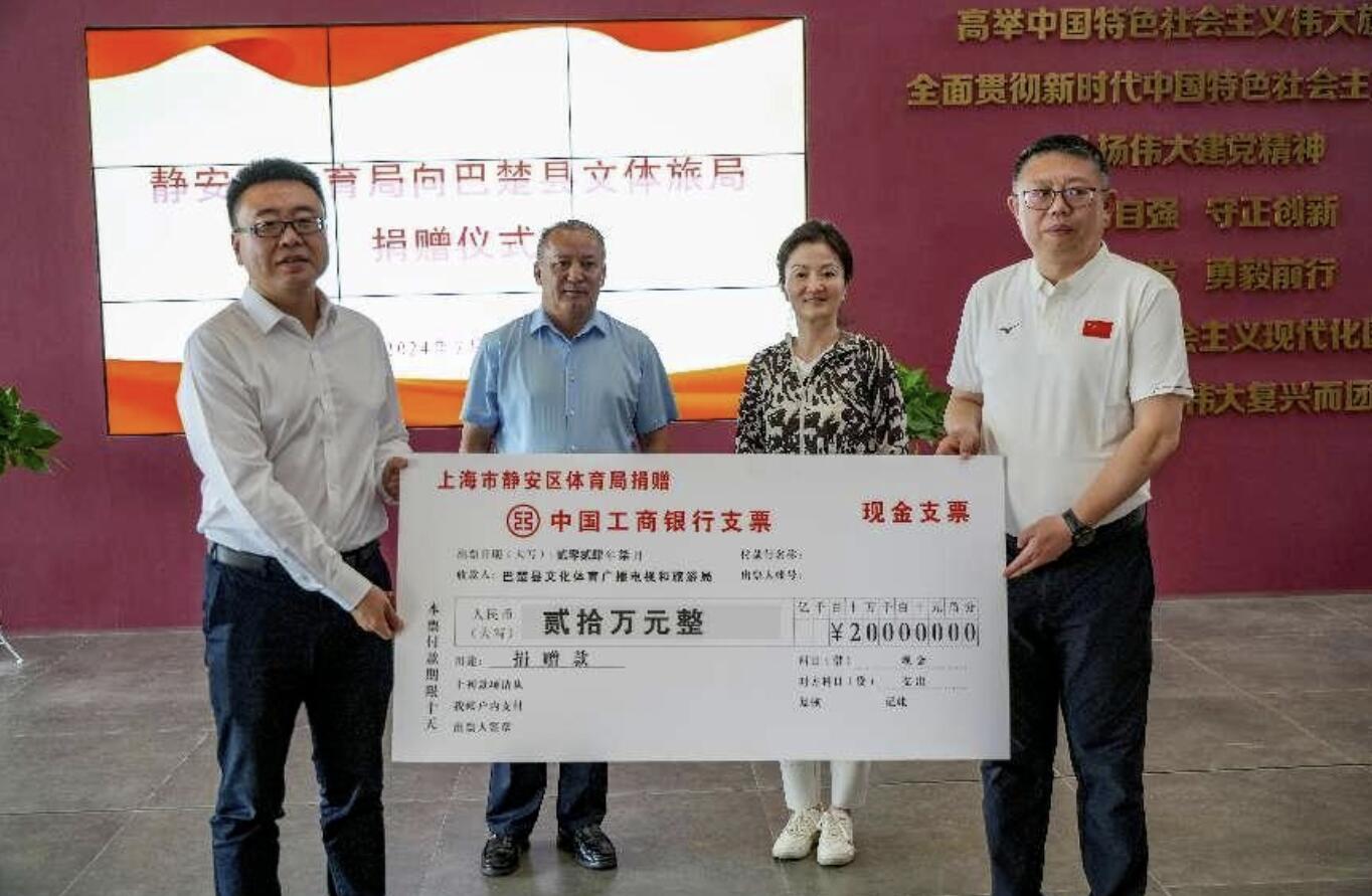 龍婉麗來到巴楚縣全民體育中心建設項目施工現場,聽取項目建設情況介紹,并出席靜安區體育局向巴楚縣文體旅局援助全民體育事業發展經費捐贈儀式。