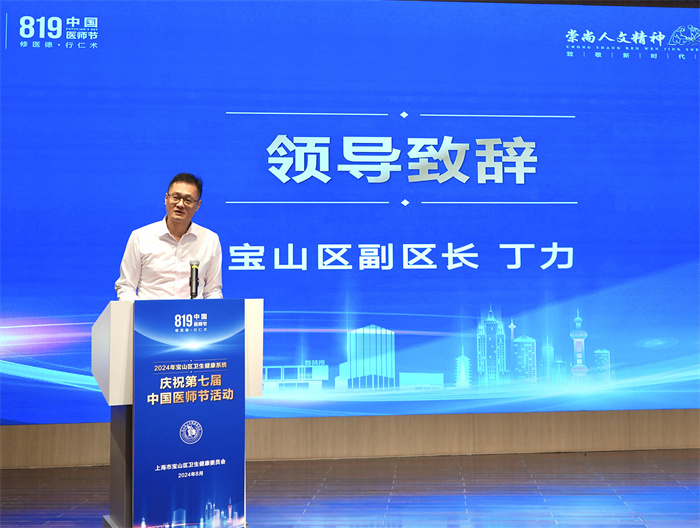 在致辭中,寶山區副區長丁力指出,寶山廣大醫務工作者始終堅持“人民至上,生命至上”理念,緊緊圍繞“大衛生、大健康”目標,不忘初心、砥礪前行,立足本職、奮發有為,推動寶山醫療改革發展突破創新,區域衛生健康事業發展取得顯著成績。他希望,全體醫師要保持醫者仁心,不忘使命,爭當人民群眾生命健康的守護者;要踐行醫者恒心,搶抓機遇,爭當醫療衛生改革發展的排頭兵;要砥礪醫者匠心,銳意進取,爭當醫療衛生事業高質量發展的主力軍。
