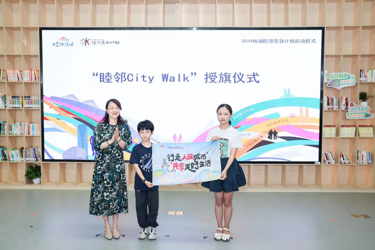 啟動儀式上,市委社會工作部基層治理指導推進處處長陳城向控江路街道的兩位小小居民代表授予了“行走人民城市,共享美好生活——楊浦睦鄰City Walk”團旗,以溫馨有趣的形式發布了楊浦區12個街道各具特色的睦鄰City Walk路線圖。睦鄰City Walk是以涵養“睦鄰精神”為目的,以睦鄰中心為紐帶,將社區最具特色的“打卡點”連珠成串,讓參與者親身體驗城市精神的厚度、紅色血脈的熱度、傳統文化的深度以及服務群眾的溫度。