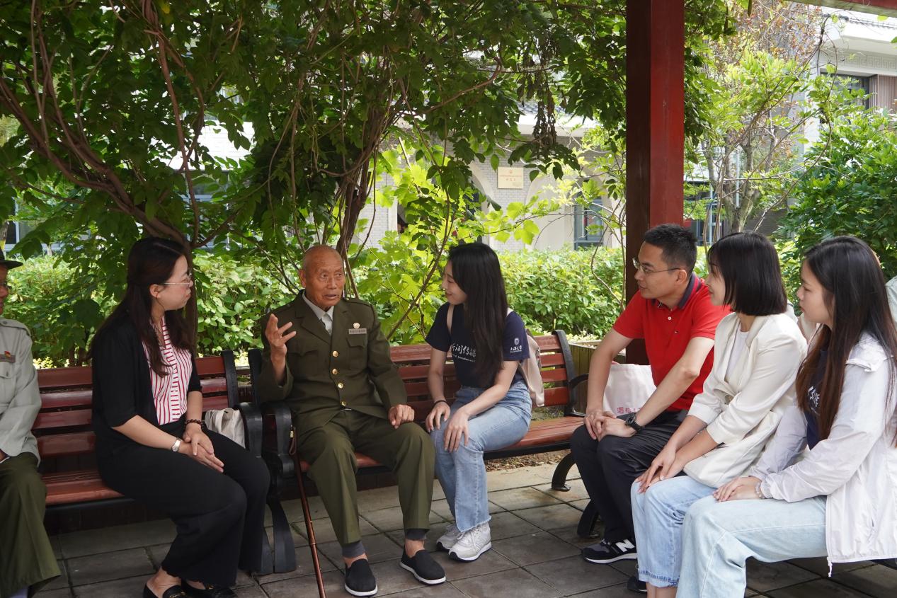 在延安市八一敬老院,團隊成員與百歲老戰士們面對面交流,共同緬懷那段烽火連天的歲月?!拔耶敃r身上已經有兩顆子彈,但還是爬起來繼續打?!彼麄兙従徶v述著戰爭年代的英勇與犧牲、對當時時勢的追憶和感慨,每一句話語都如同跨越時空的橋梁,將那段刻骨銘心的歷史畫卷徐徐展開,在場的每一位成員都深深為之動容。八一敬老院還向實踐團隊贈送了珍貴的自編書籍——《革命老戰士口述歷史》。這本凝聚了多位革命老戰士心血的回憶錄,更激發了學生內心深處的愛國情懷和對革命先烈的無限敬仰。