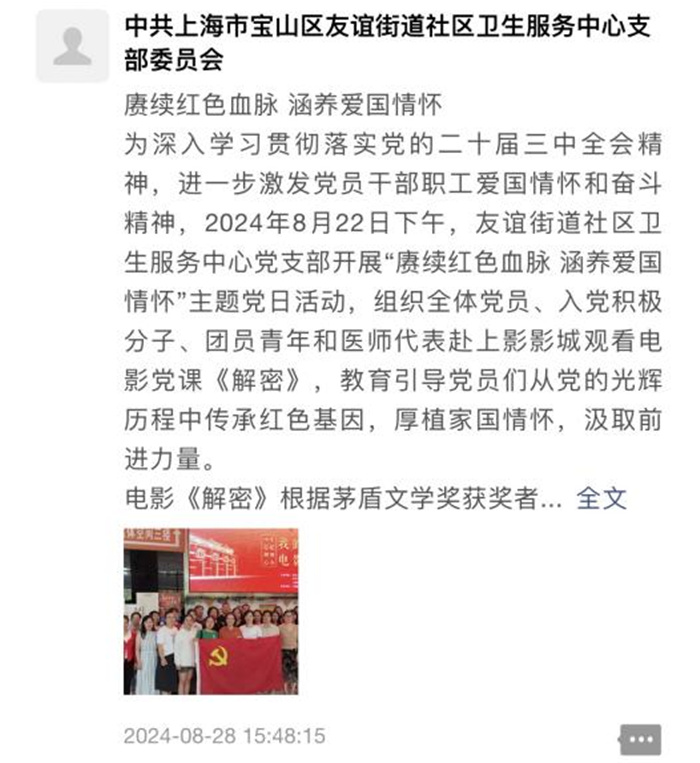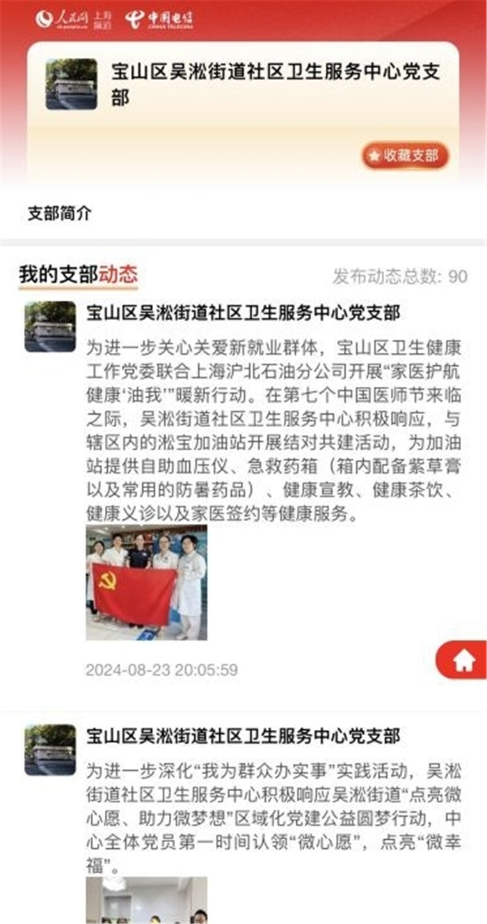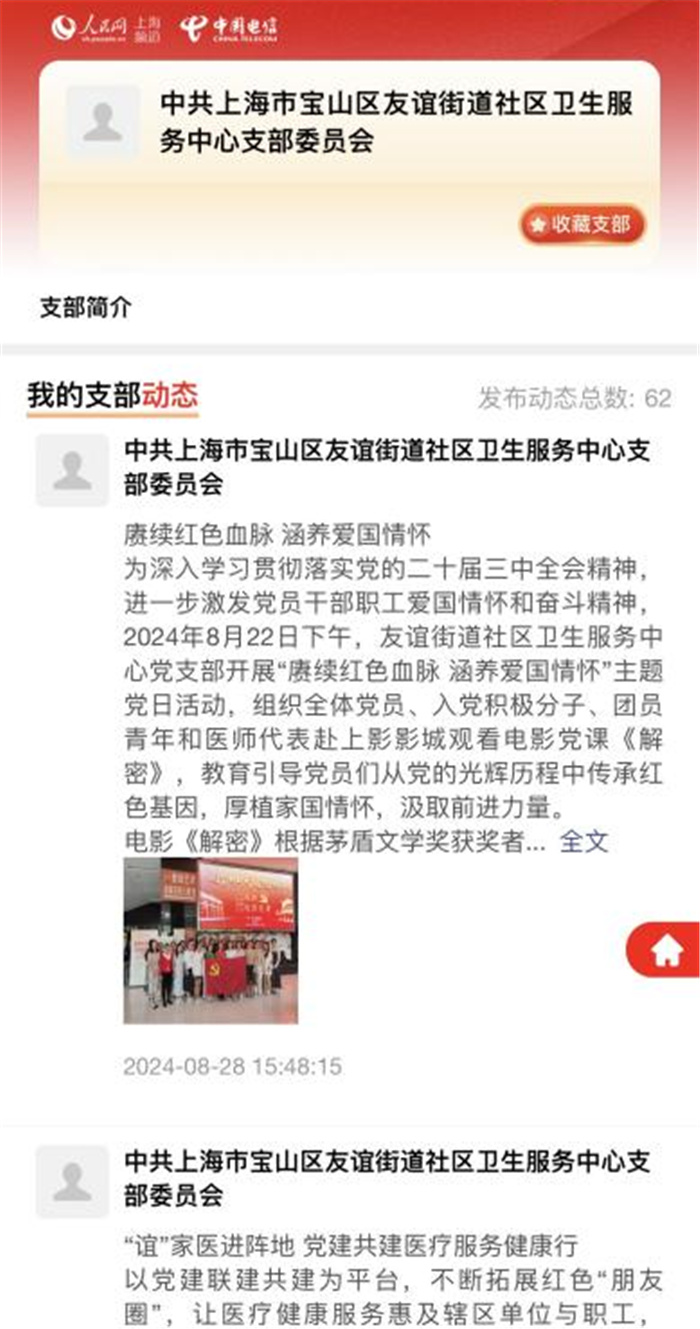 2、寶山區友誼路街道社區衛生服務中心支部委員會,已發布動態62條,8月發布動態4條。