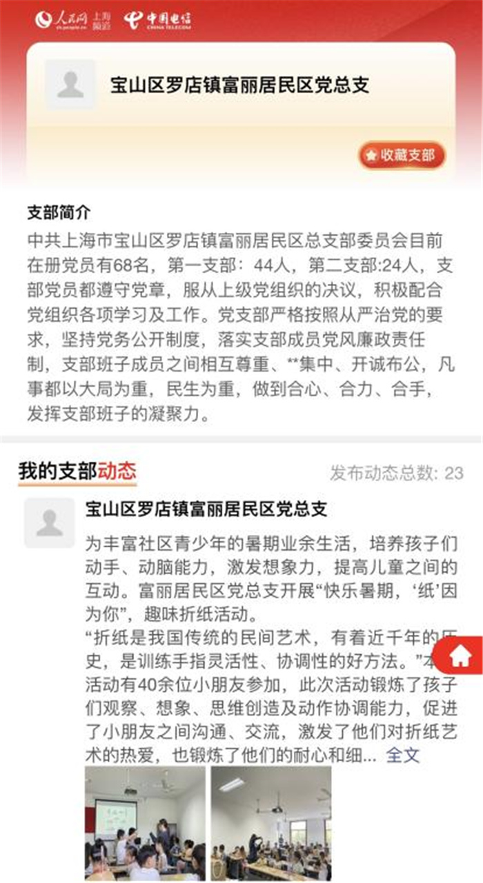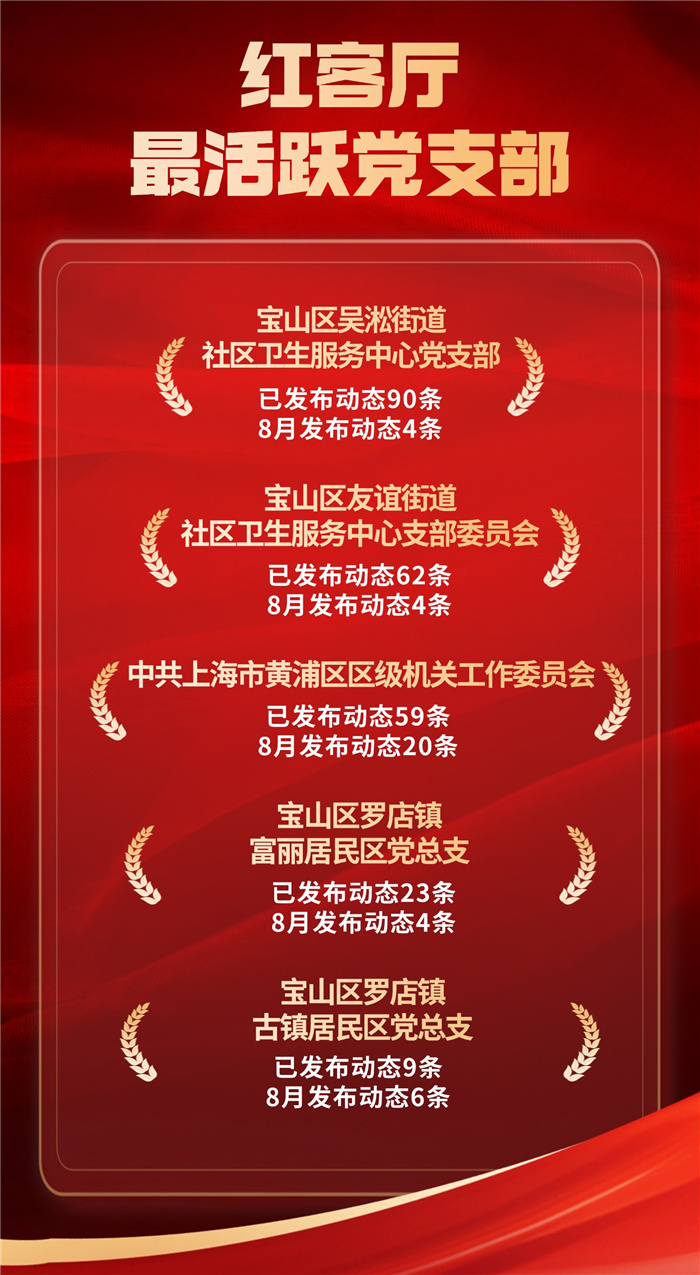 4、寶山區羅店鎮富麗居民區黨總支,已發布動態23條,8月發布動態4條。