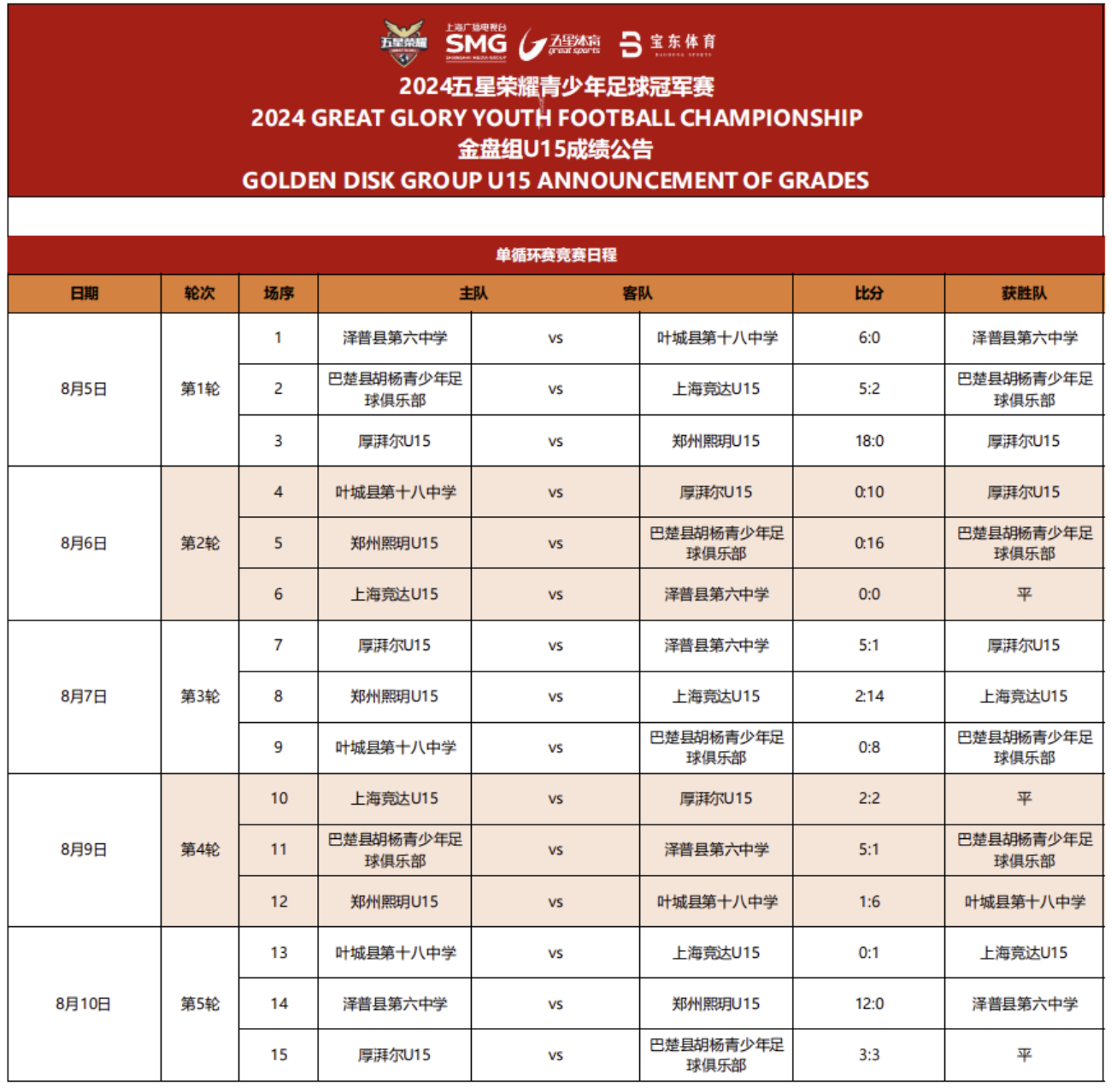 日前,經過激烈爭奪,2024第四屆“五星榮耀”青少年足球冠軍賽在樂動力臨港足球綜合運動中心圓滿落下帷幕。巴楚胡楊青少年足球俱樂部以全勝戰績勇奪“五星榮耀”足球比賽金盤組U15冠軍。