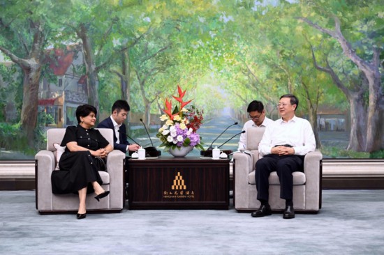 陳吉寧會見英國保誠集團董事長范德娜、美國史帶集團董事長杰弗里·格林伯格