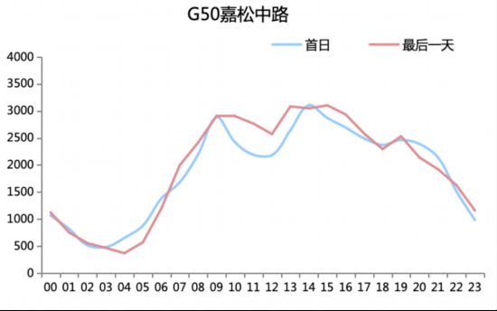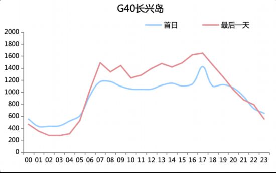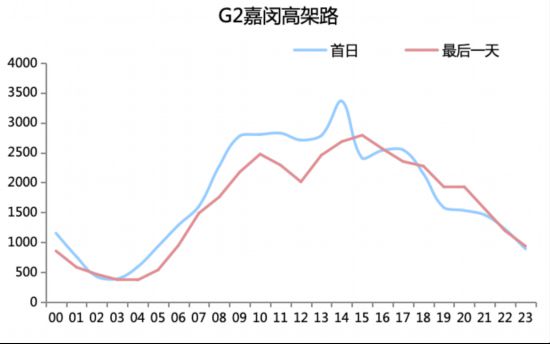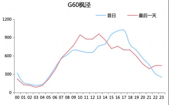 節日最后兩天22:00-次日2:00,受鐵路臨客旅客及夜間航班旅客集中到達影響,對外交通樞紐周邊接送客車流大幅攀升,將引發周邊快速路出現不同程度局部擁堵,如北翟高架北側北翟地道至嘉閔高架、延安北側延西立交至虹橋機場、滬閔西側上海南站出口至莘莊出口等等。