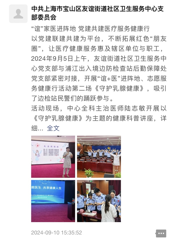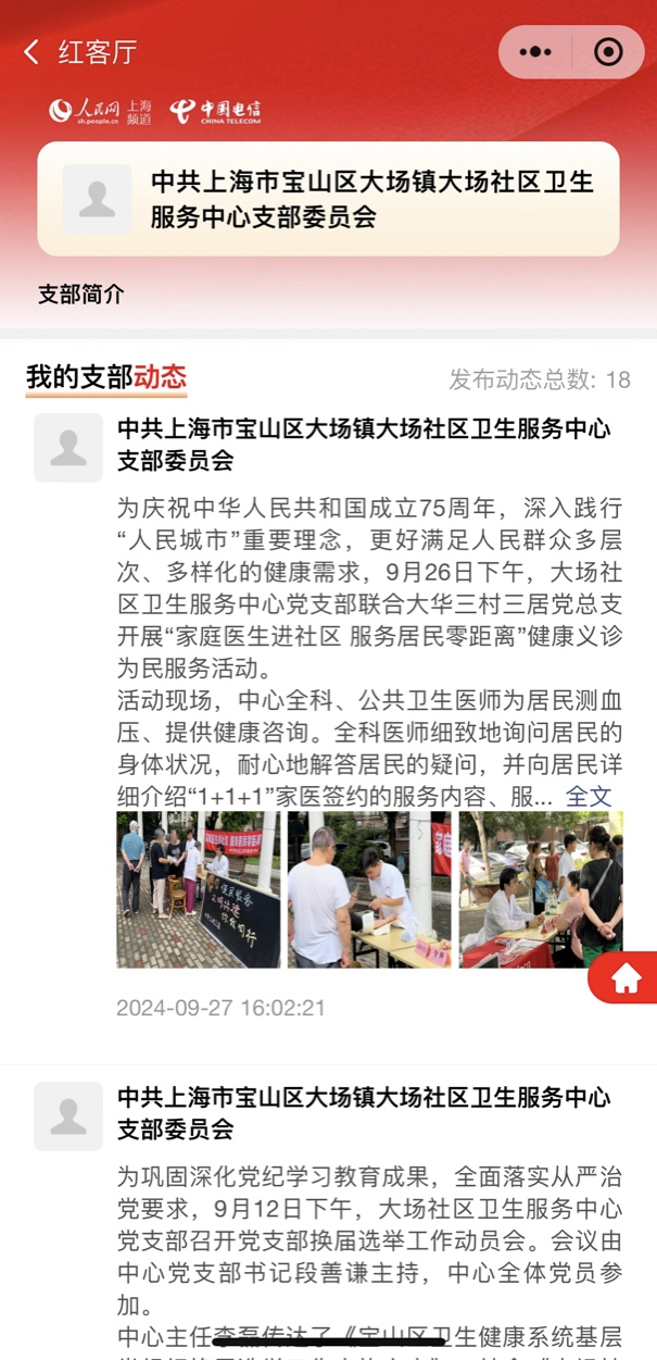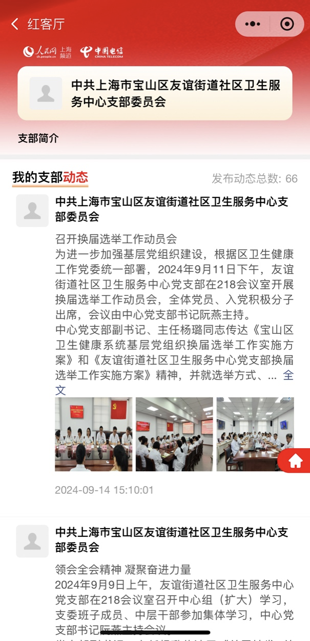 2、中共上海市寶山區友誼街道社區衛生服務中心支部委員會,已發布動態 66條,9月發布動態4條。