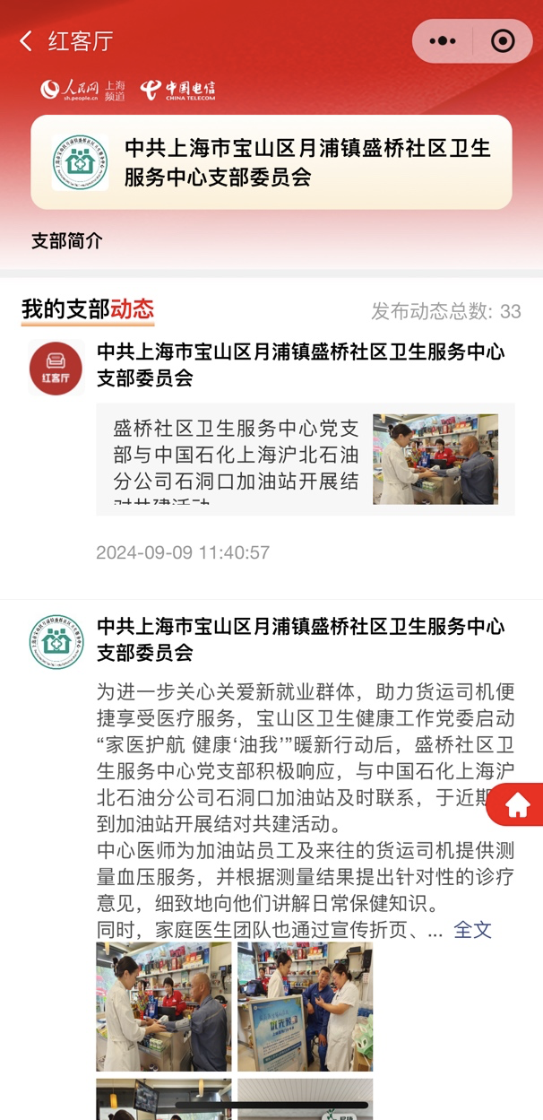 4、中共上海市寶山區月浦鎮盛橋社區衛生服務中心支部委員會,已發布動態33條,9月發布動態3條。