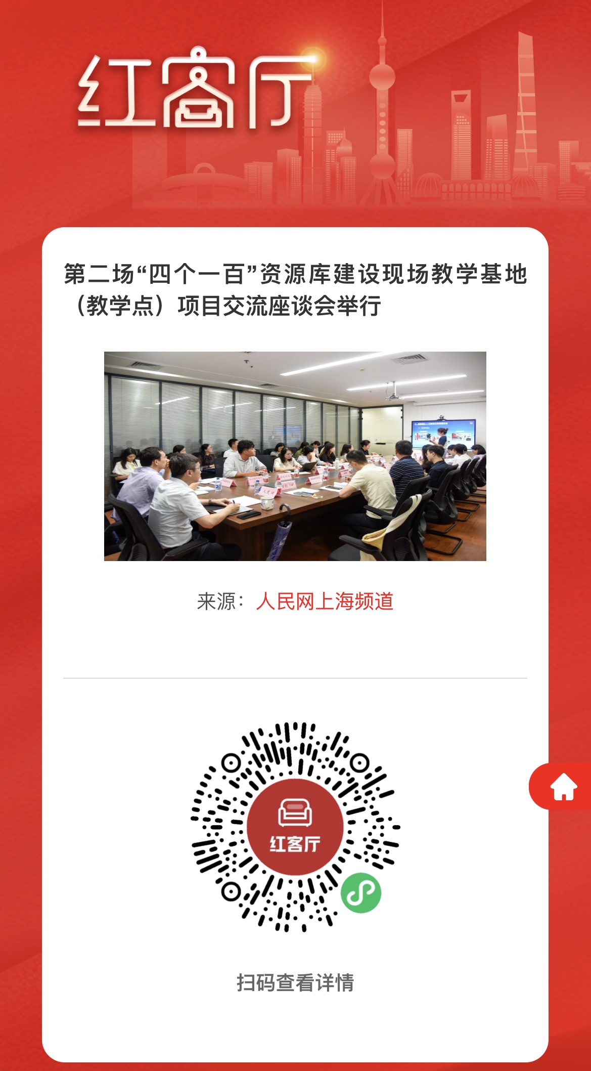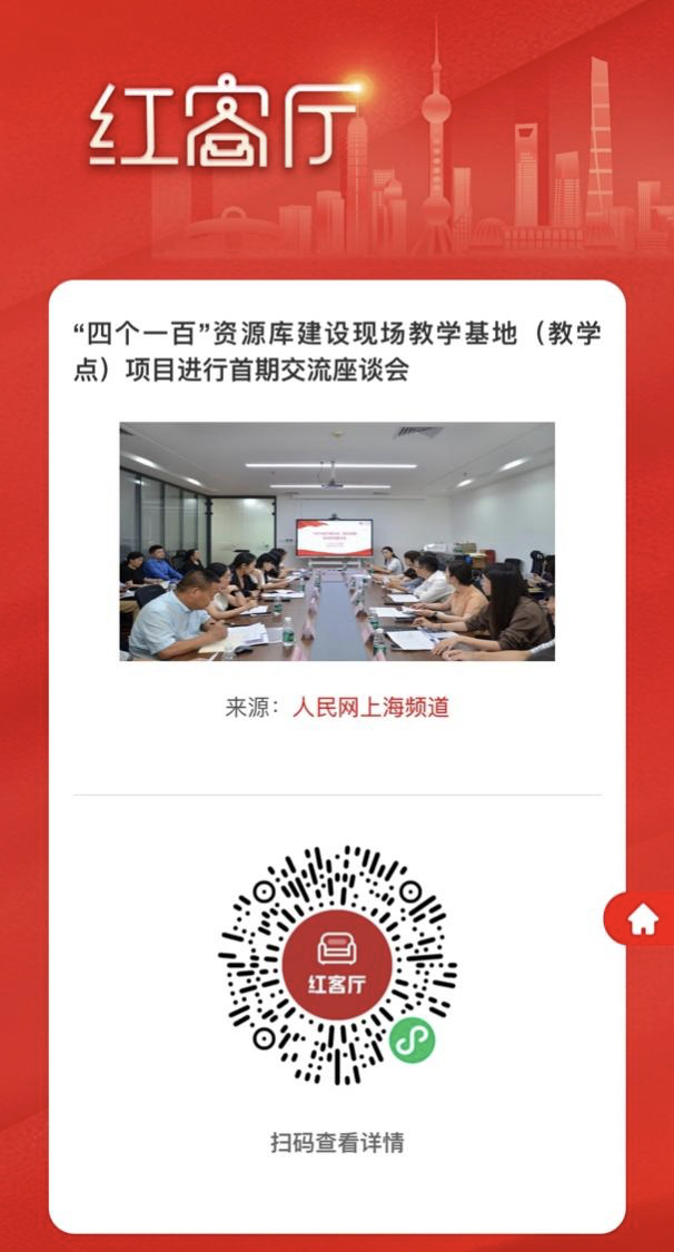 9月20日,“四個一百”資源庫建設現場教學基地(教學點)項目第二場交流座談會在人民網上海頻道召開。會上,相關部門就“四個一百”資源庫建設的具體分類、 目標要求進行解讀,明確項目推進的方向與重點。