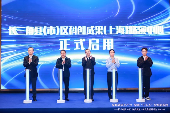 活動當天,為響應長三角縣市區高質量一體化發展倡議,助力長三角縣市區一體化高質量發展,在首屆研討會成立長三角縣(市)區科技產業聯盟基礎上,2024年研討會舉行了長三角縣(市)區投資家聯盟成立儀式,長三角縣(市)區科創成果(上海)路演中心啟用儀式,與會的上海市普陀區、江蘇省鹽城市阜寧縣、浙江省紹興市上虞區、安徽省合肥市蜀山區、安徽省淮南市壽縣、安徽省安慶市岳西縣還共同發起成立了長三角縣(市)區新質生產力協同創新共同體。