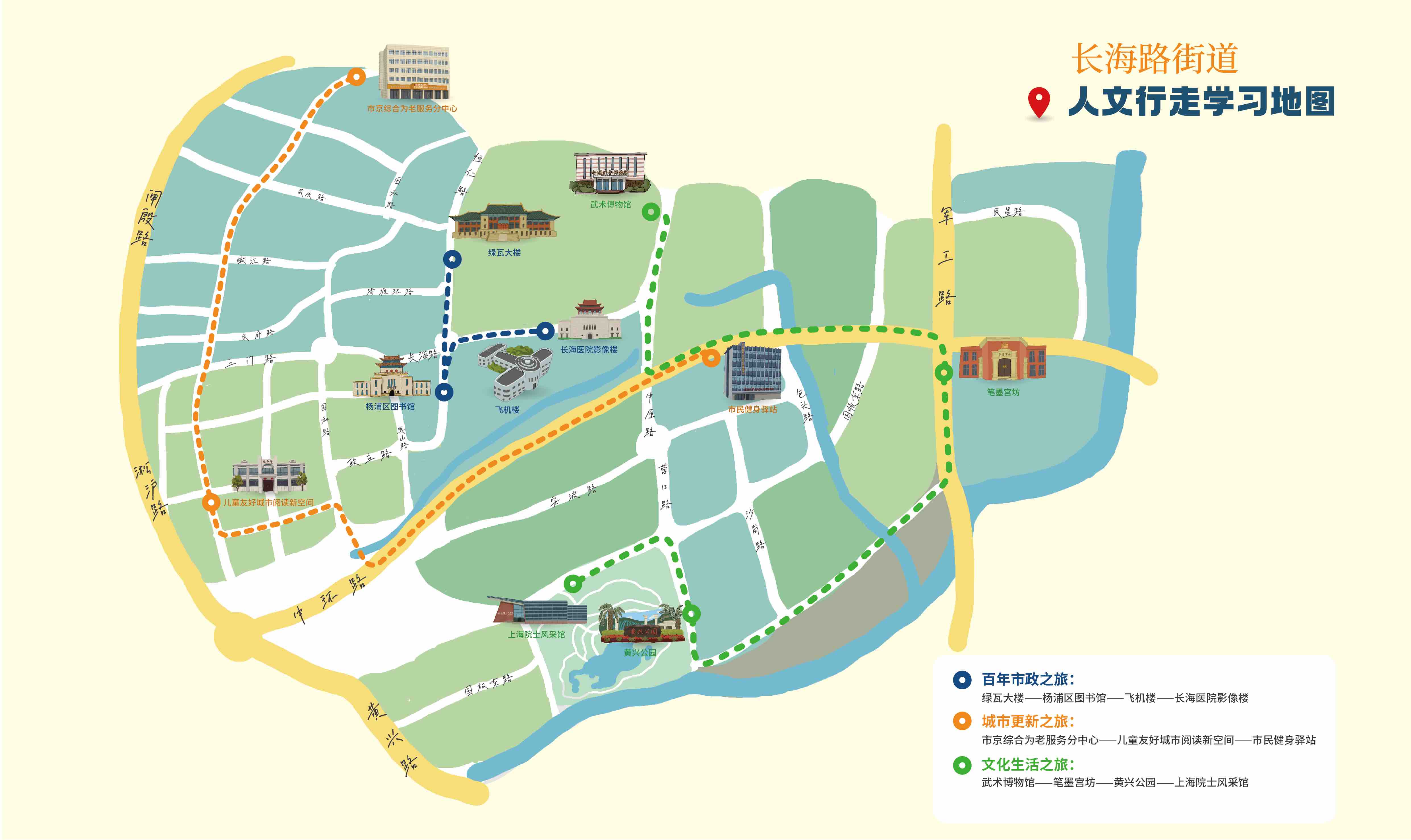 專題片《悅學長海 人人出彩》回顧了一年來街道在推進學習型社區創建中人民學習新風尚、智慧學習新路徑和社區治理新成效;一段City Ride騎行視頻讓大家先睹為快,由上海體育大學學生、哈啰普惠科技有限公司員工及長海路街道社區居民代表等6人組成的騎行小分隊沿著“百年市政之旅”路線,共同探尋街道轄區的百年市政歷史建筑;發布的長海路街道《人文行走 學習地圖》,包含“百年市政之旅”“城市更新之旅”和“文化生活之旅”三條打卡新路線,豐富居民“家門口的好去處”。