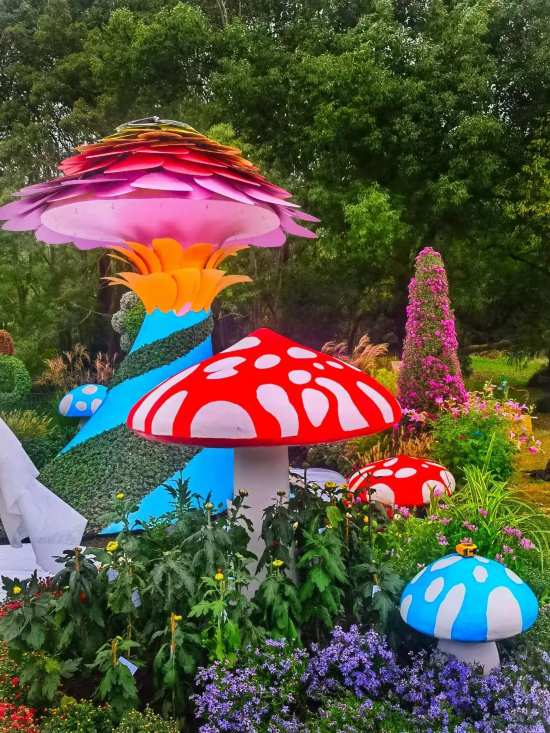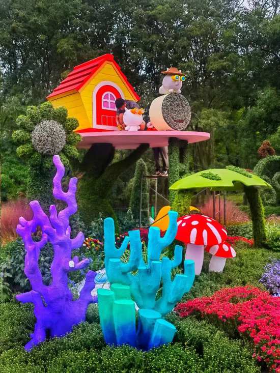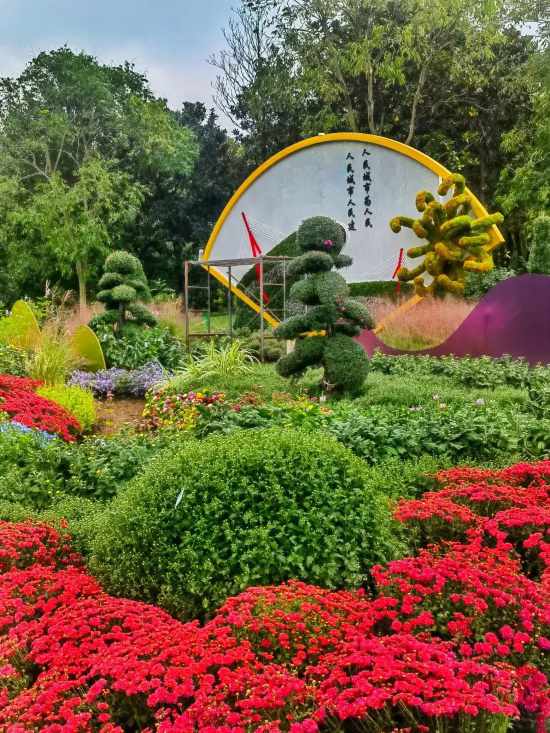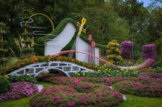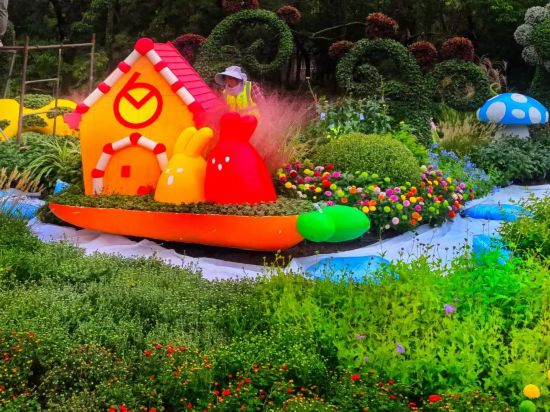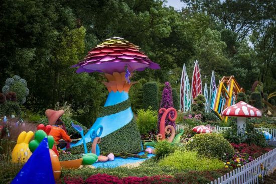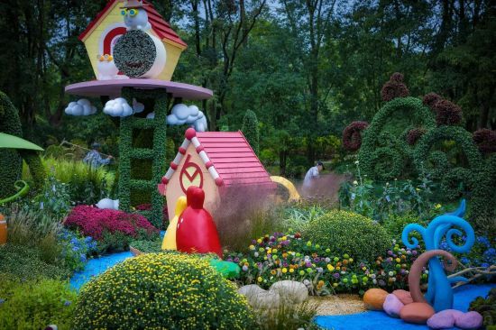 室外景點展區位于原花藝館,依托森林背景,布置8組室外景點,采用綠雕、花境等形式打造豐富的秋日景觀。