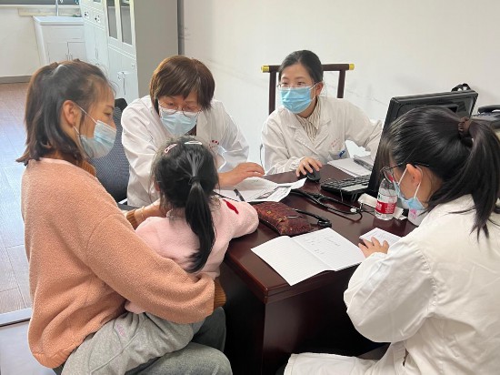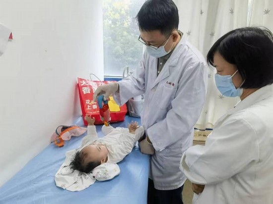 復旦大學附屬兒科醫院醫生汪軍在社區為幼兒做早期評估。