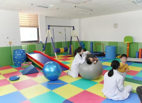 不到現場,很難想到一個設在社區的兒童康復服務基地,就有10多名治療師,分出了運動治療、作業治療、言語治療、感覺統合治療、物理因子治療、中醫治療等多個功能區,能開展10多項康復項目。來自復旦兒科、閔行醫院的康復科專家定時下沉坐診,讓患者得到同質化、連續性、優質的康復治療。
