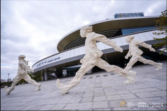 世界頂尖科學家論壇永久會址門口的雕塑。頂科協供圖
