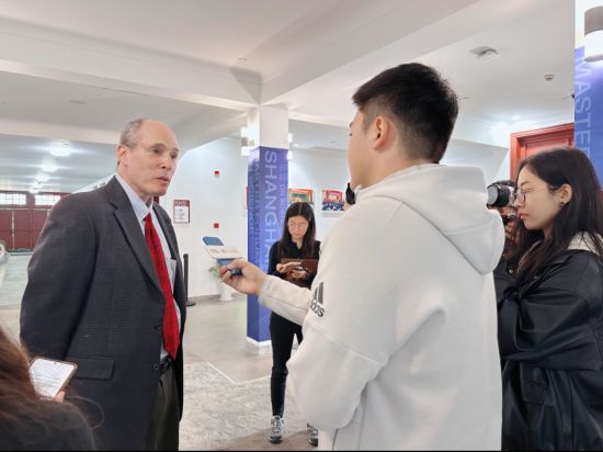 內森斯教授在復旦大學接受大江東-復旦融媒體創新工作室采訪。陳汶鑫攝