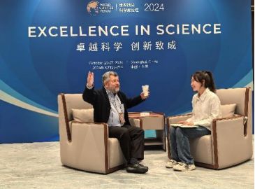 2024年10月26日,身穿藍色開衫、手握一杯熱咖啡的埃菲,在世界頂尖科學家論壇向我們講述了他與中國延續至今的故事。