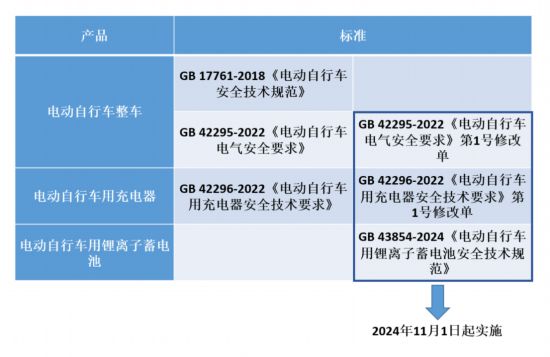 自2024年11月1日起,對新提出認證委托的電動自行車,應符合前述強制性國家標準及修改單要求,經過認證并標注認證標志后,方可出廠、銷售、進口或者在其他經營活動中使用。
