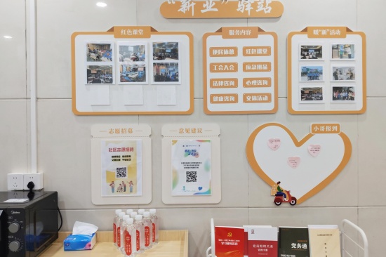 新就業群體是城市發展的重要力量,為了更好地服務這一群體,站點一樓設置了新業驛站,為小哥們提供休息、飲水、充電、熱飯、避雨等基本服務,并設置圖書角、急救箱等,切實增強新就業群體的幸福感、認同感。針對綜合網格內園區、樓宇眾多的特點,工作站在二樓設立了營商惠企服務點和社區事務遠程幫辦點,為辦事企業和群眾提供了省時省力更省心的服務體驗。此外,居民和白領還可以通過撥打工作站熱線電話咨詢黨群服務、工青婦服務、業務辦理、企業咨詢等各類問題?!耙徽臼健钡姆漳J讲粌H提高了服務效率和質量,還極大地方便了居民和企業的生活和工作。
