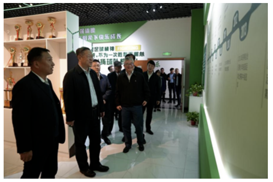 曹遠峰一行在喀什六中足球陳列室,調研學校足球特色建設