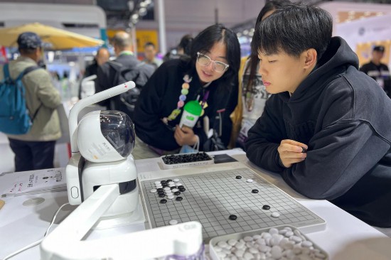 第七屆進博會上,觀眾與元蘿卜AI機器人對弈。田泓攝