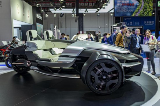 YAMAHA展臺展示的TRICERA概念車。這款全開放式EV電動倒三輪車為中國首發。王初攝
