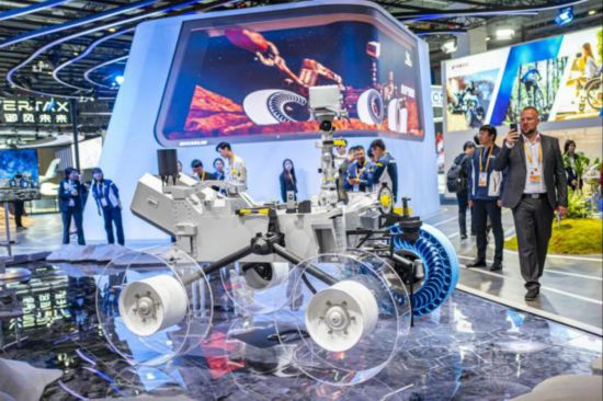 米其林展臺展示為月球探測車研發的免充氣輪胎Lunar Wheel。該產品為亞洲首秀。王初攝