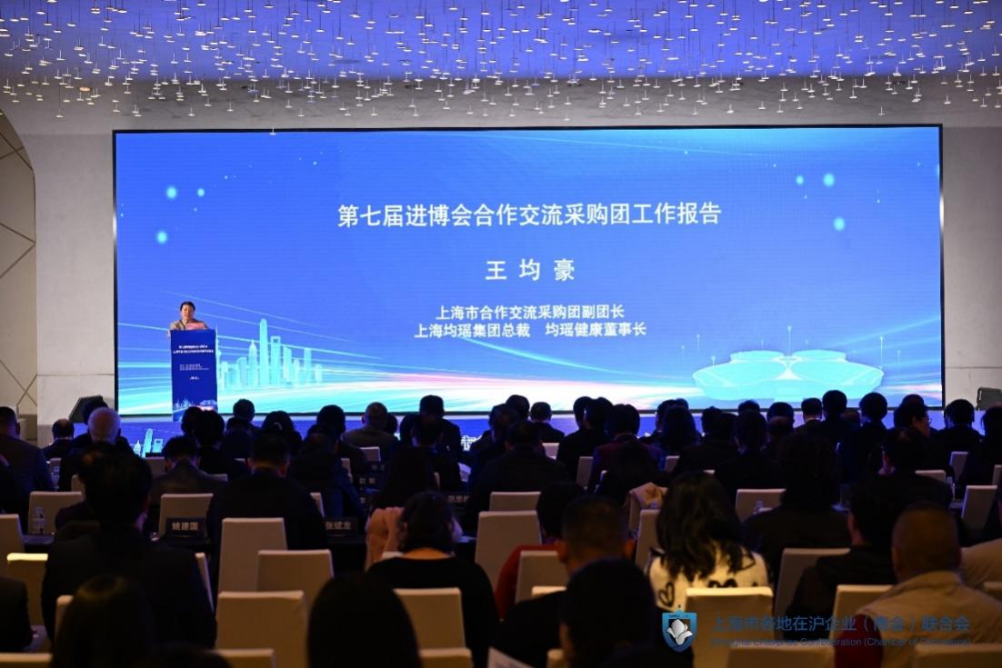 上海市合作交流采購團副團長、上海市各地在滬企業(商會)聯合會會長王均豪代表第七屆中國國際進口博覽會上海市合作交流采購團做工作總結報告。本屆中國國際進口博覽會上海市合作交流采購團緊扣進博會“構建新發展格局的窗口、推動高水平開放的平臺、全球共享的國際公共產品”三大定位,全面發揮“國際采購平臺、投資促進平臺、人文交流平臺、開放合作平臺”四大平臺功能,提出以“融匯區域力量,拓展國際朋友圈,共享進博新機遇”為主題開展本屆采購團工作。