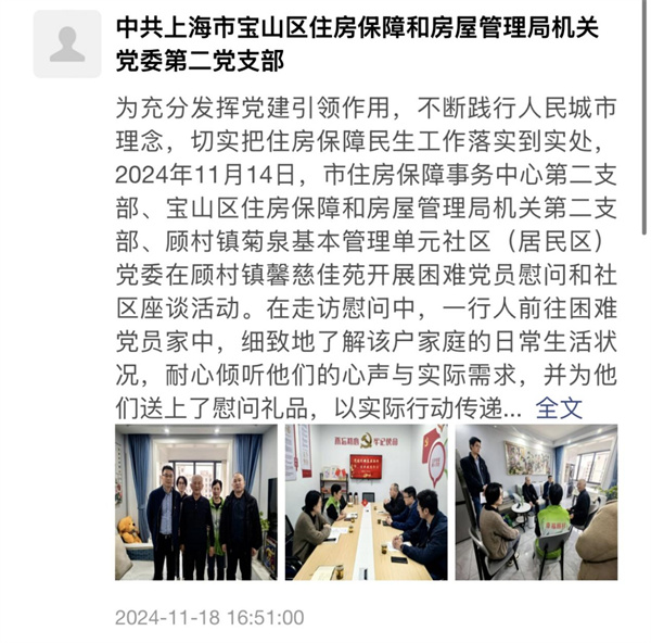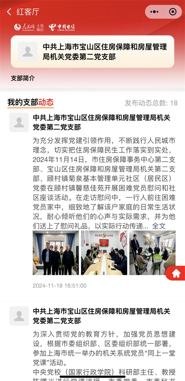 2、中共上海市寶山區住房保障和房屋管理局機關黨委第二黨支部,已發布動態18條,11月發布動態6條。