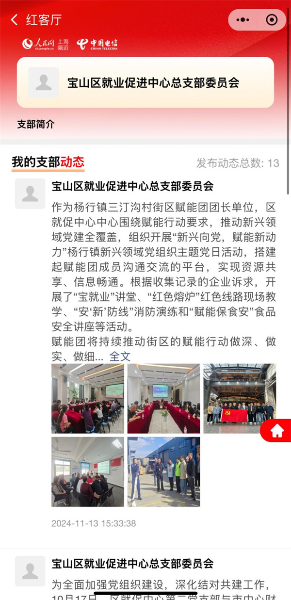 3、寶山區就業促進中心總支部委員會,已發布動態 13條,11月發布動態5條。