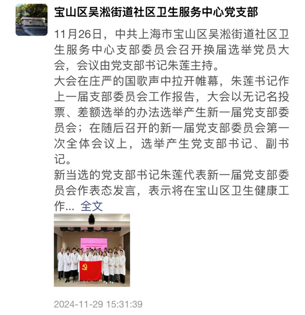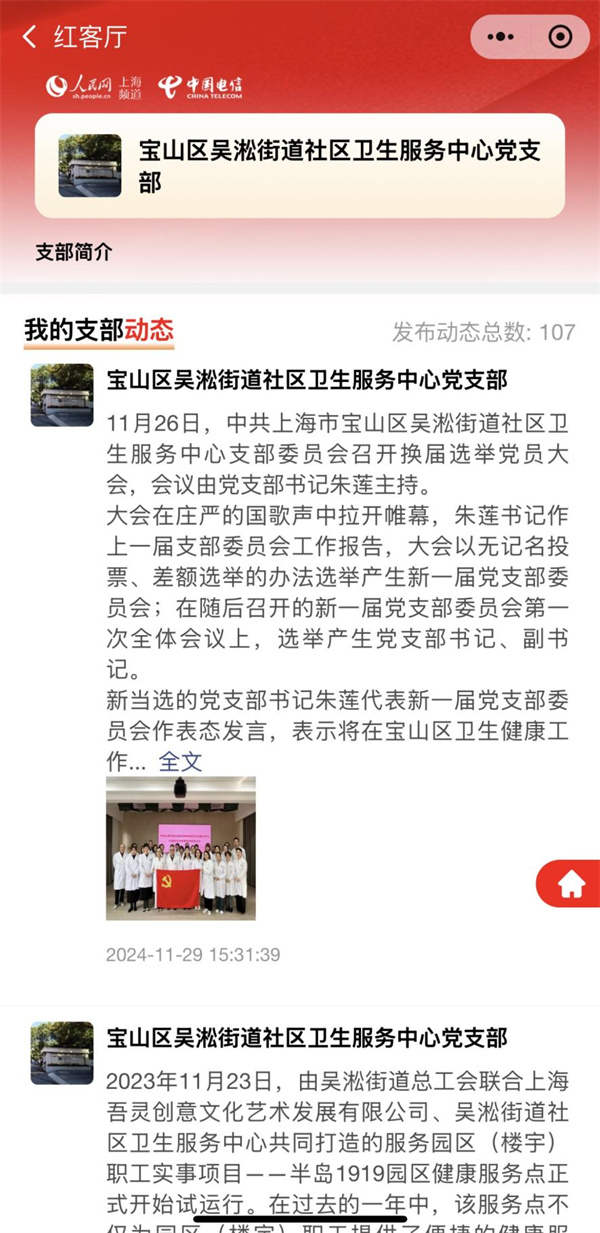 4、寶山區吳淞街道社區衛生服務中心黨支部,已發布動態107條,11月發布動態5條。
