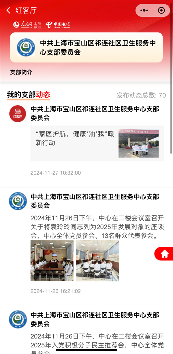5、中共上海市寶山區祁連社區衛生服務中心支部委員會,已發布動態70條,11月發布動態5條。