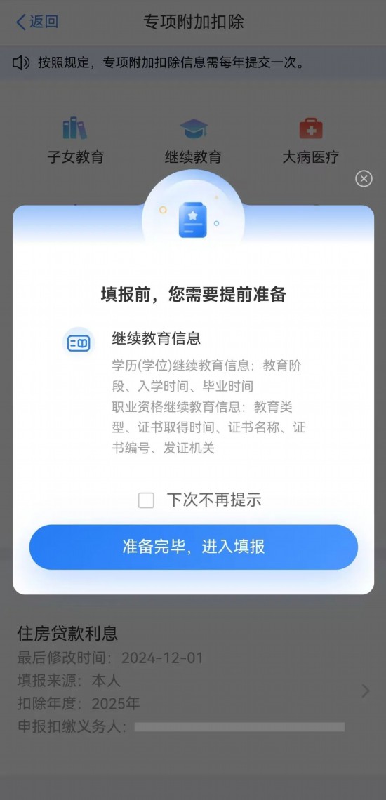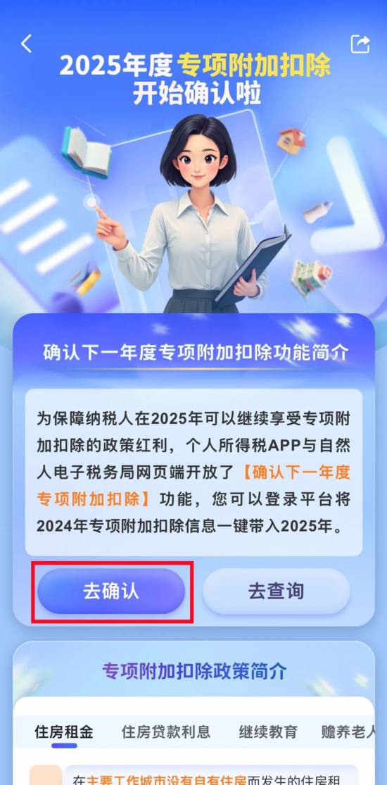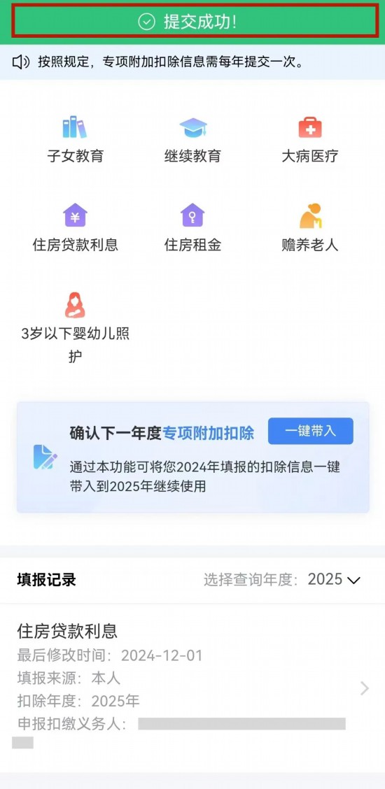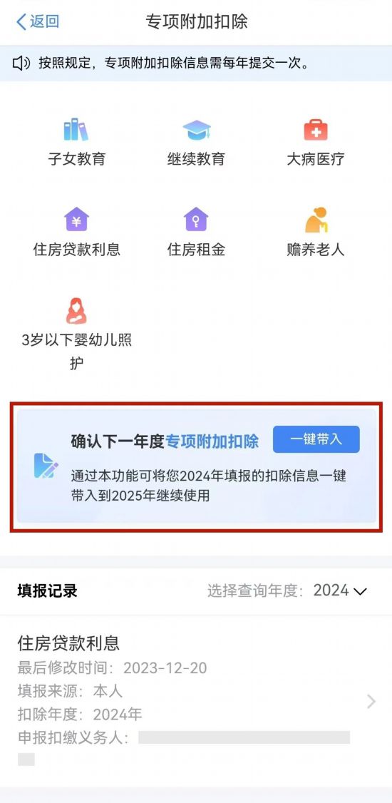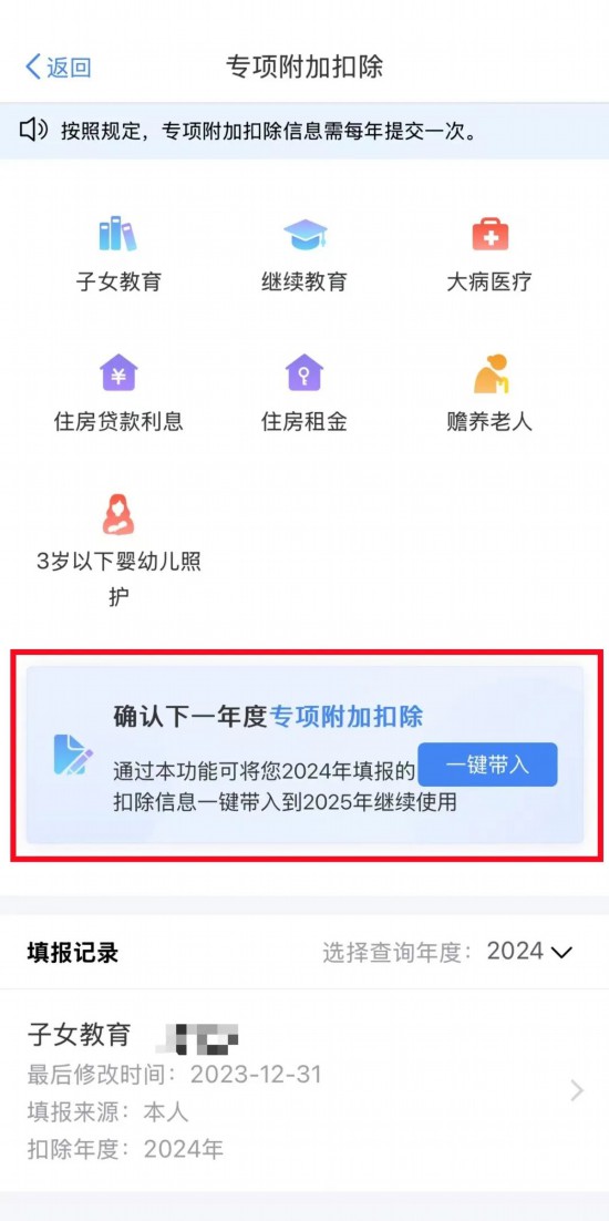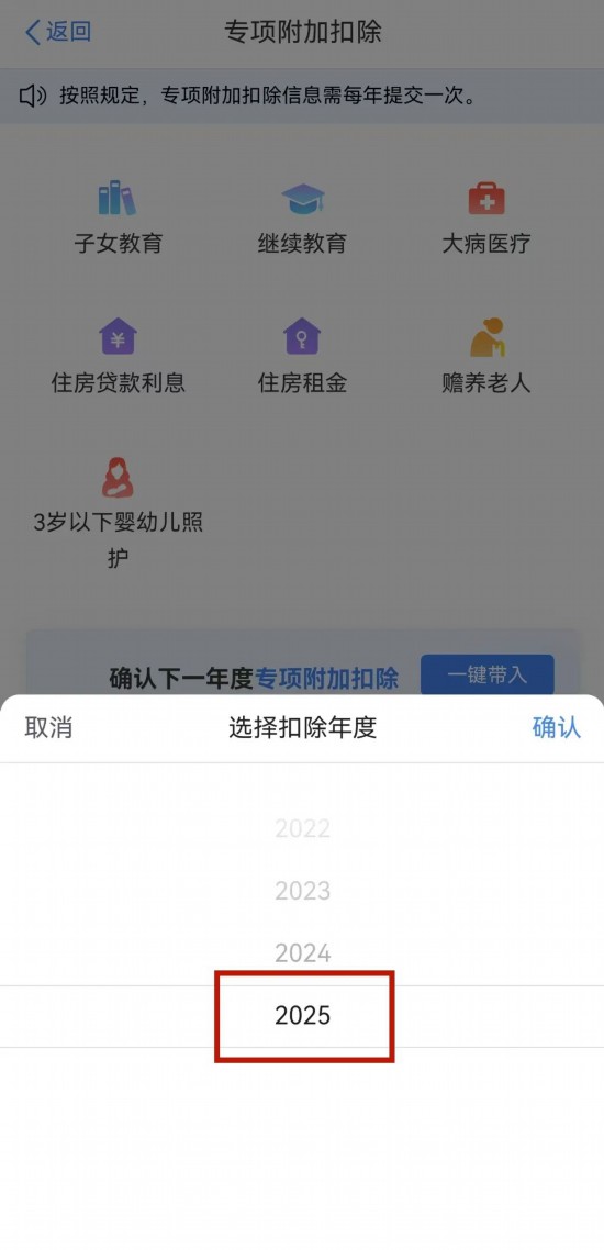 如果您2025年度個人所得稅專項附加扣除信息無變動,僅需在2024年度基礎上完成確認。