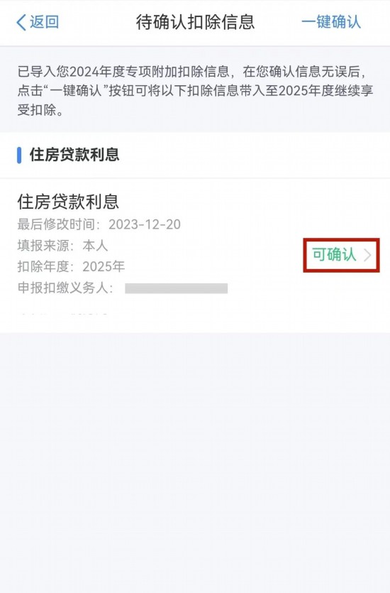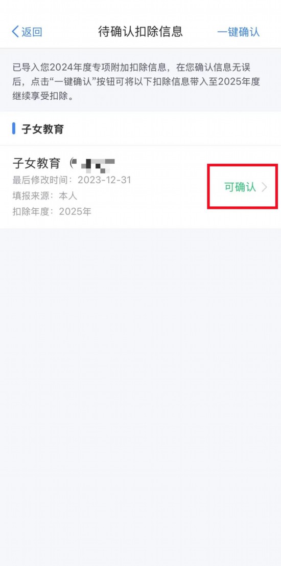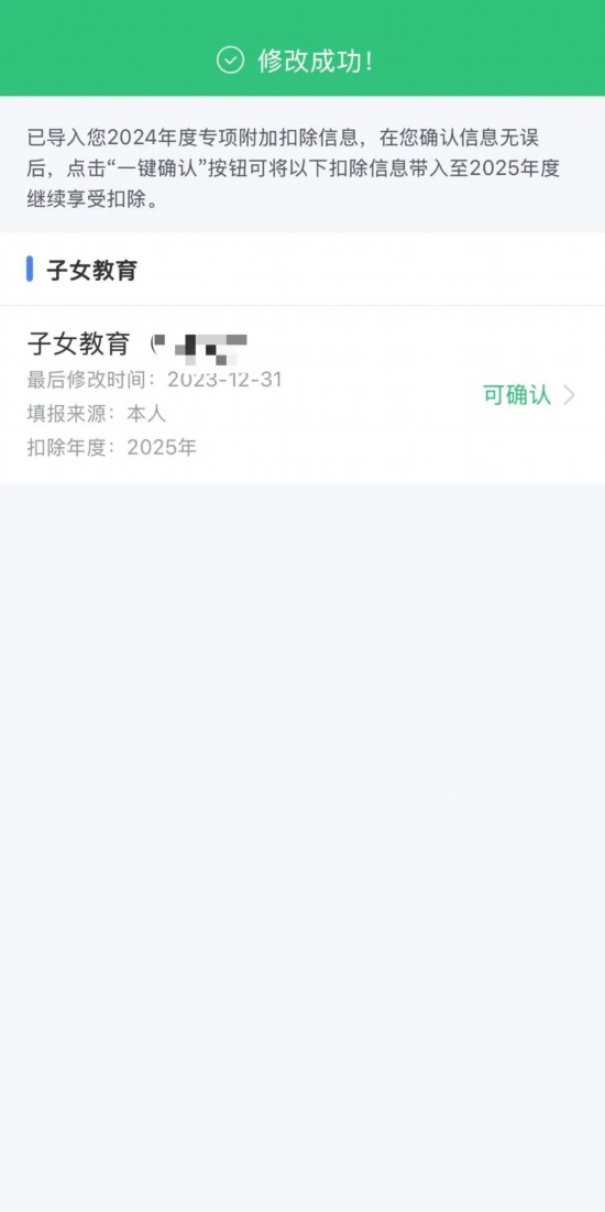 完成后,如您2025年還有其他繼續享受的專項附加扣除,可按照【情形一】的相關步驟,點擊“一鍵確認”完成信息提交。