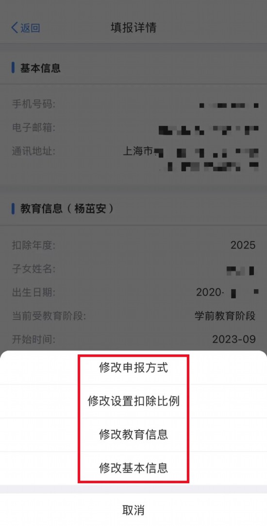 如果您2025年度個人所得稅專項附加扣除信息有變動,需修改或刪除信息。
