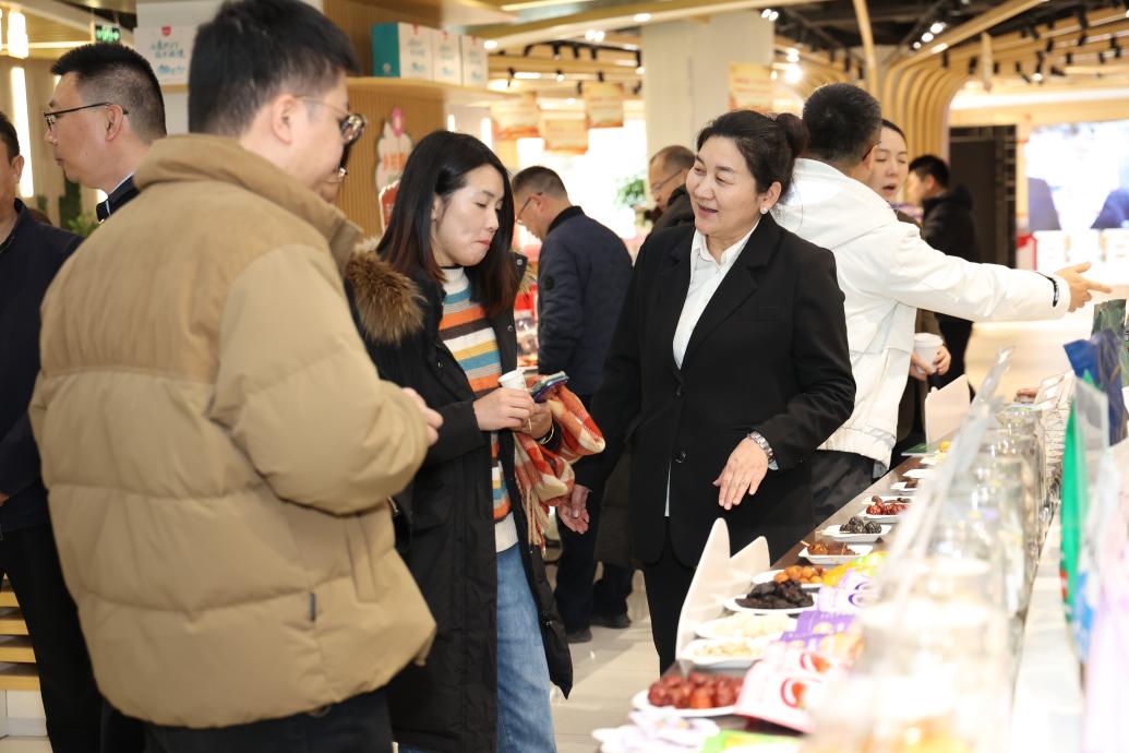 現場還特別設置了產品展示區和洽談區。產品展銷區陳列著兵團大地灰棗、酸奶巴旦木、大無花果等其他特色農產品,與會者紛紛表達了對新疆兵團產品的濃厚興趣和高度認可。他們普遍認為,兵團產品不僅口感上佳,而且品種豐富,極具市場潛力。眾多渠道銷售方代表與新疆兵團企業負責人進行了面對面的洽談合作,共同尋求兵團產品進入上海市場的合作突破點。