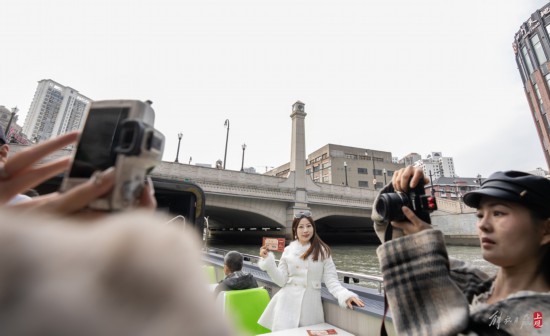 在游船上打卡蘇州河畔的方式吸引了不少外地年輕游客。