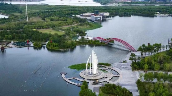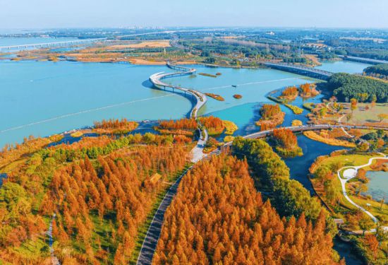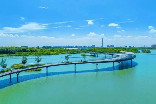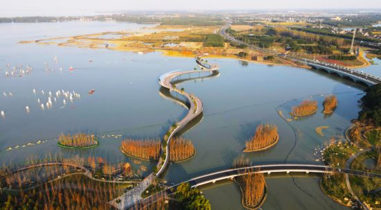 在湖光瀲滟中,黿蕩還打造了一個又一個網紅打卡地:黿蕩慢行橋、黿蕩小館、黿蕩生態綠道……2023年,黿蕩獲評長三角一體化示范區首個示范幸福河湖。