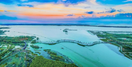 黿蕩,地處淀山湖旁,位于蘇州市吳江區和上海市青浦區交界處。在寬闊浩淼的湖面上,鐵路橋如龍臥波,蜿蜒向前。乘坐在飛馳的高鐵上,窗外是浩淼湖水,這份體驗獨具一格。