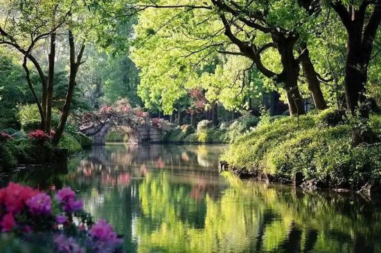園景以一泓池水為中心,四周古木蔥蘢,步移景異,滿園似畫,素有“春訪牡丹夏觀荷、秋來賞菊冬瞻梅”之趣。園內樓堂亭榭,曲徑通幽,保存著明代柱頰山房、疑舫、讀書堂,以及清代池上草堂、寶成樓、雪海堂、雕花廳等亭臺樓閣;收藏有元代趙孟頫書法真跡《前、后赤壁賦》石刻、清代《云間邦彥畫像》碑刻等藝術瑰寶;園內懸掛的當代書法名家題字匾聯更是不計其數,人文藝術與中華造園藝術在這里積淀、融合和傳承,是上海千年歷史文脈的延續。