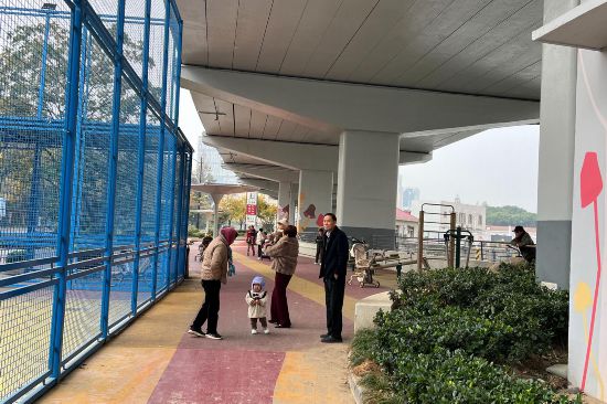 而對緊鄰這一路段的政本路350弄小區居民來說,這種變化則更加明顯。從住宅三樓以上望出去,高架防撞墻“長高了”,還換了“新外衣”,全新的聲屏障光潔亮麗,隔音效果也更好。更讓人驚喜的是,原本昏暗逼仄的高架橋下空間,被改造成明亮活潑的籃球場和兒童樂園,成了散步遛娃的好去處。