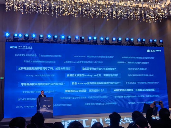 “公開高質量數據即將用盡了嗎?如何未雨綢繆?”“我們需要什么樣的AI4S基座模型?”“針對語言外的自然信號,目前的建模是否為最優解?”……主會場大屏幕上滿是各種各樣的問題,也是這場年會與其他會議不一樣的地方。主持人介紹,這場年會堅持問題導向,提前廣泛征集并凝練出每個領域的數十個關鍵問題,在年會上切磋心得、碰撞思考,“通過高質量問題激發更多創新靈感”“互相出好題、互相協同”,一起直面人工智能發展關鍵技術挑戰與難題。