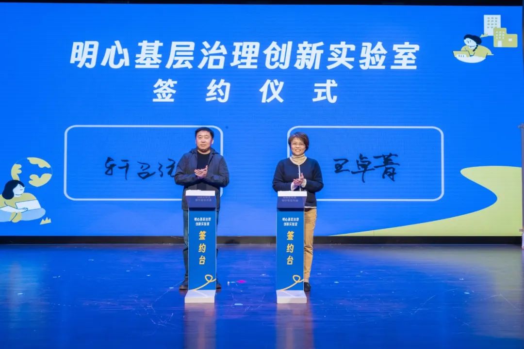為進一步圍繞社區治理的理論創新、方法創新、實踐創新,引入各方資源對居民關切項目進行整體賦能與品牌提升,培育黨建引領基層高效能治理的“東明模式”,東明路街道打造明心基層治理創新實驗室。在活動現場,人民網上海頻道副主編軒召強和街道黨工委副書記王卓菁進行簽約。