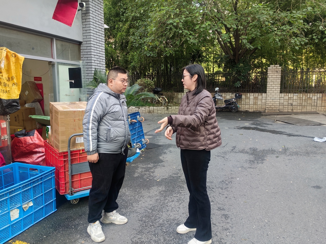 在聯系走訪過程中,街區黨支部了解到街區內一家京東快遞驛站網點門前地面有大片水漬,并且雨棚上一直有大量水流滴落。經過了解,是該處二樓曬臺一個水泵發生故障造成漏水。這個網點不僅經常有京東快遞小哥騎電瓶車來往,周邊居民區經過的行人也較多,如遇上低溫冰凍,很容易造成造成人員滑倒等意外。