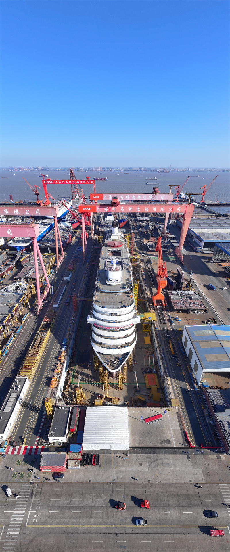 該船從入塢總裝搭載到全船貫通,用時不到9個月,較首制船“愛達·魔都號”縮短了2個多月,建造速度比肩歐洲頂尖大型郵輪建造企業,標志著中國船舶工業在初步掌握設計建造關鍵核心技術的同時,向著系列化、精益化和高效化建造的大型郵輪2.0目標又邁出了堅實的一步。