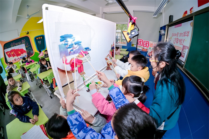 唐鎮小學辦班點非遺皮影戲活動。浦東團區委供圖