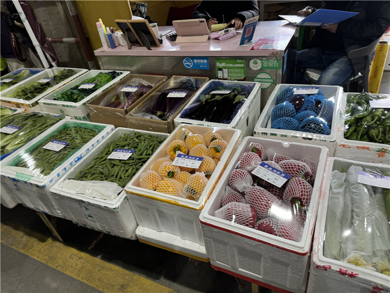 移步至主場館,偌大的交易市場內人頭攢動,沿著擺渡車行進的方向,上海蔬菜集團總裁孫燕敏依次向記者介紹。