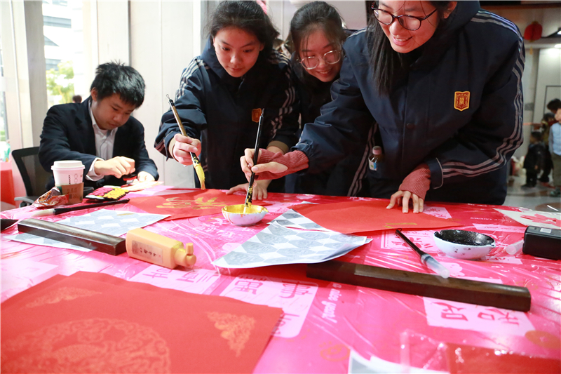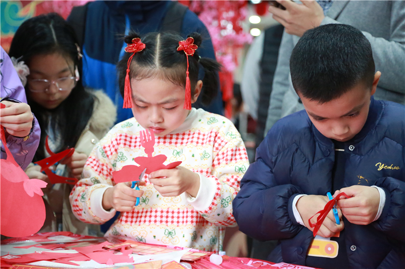 1月23日,恰逢小年。DIY糖畫的甜蜜創作、剪窗花的精巧手藝、拓印年畫的古樸韻味、烙畫葫蘆的獨特魅力、揮毫潑墨寫對聯的文化傳承……“巳巳如意,共童成長”迎新春游園會熱鬧開啟。