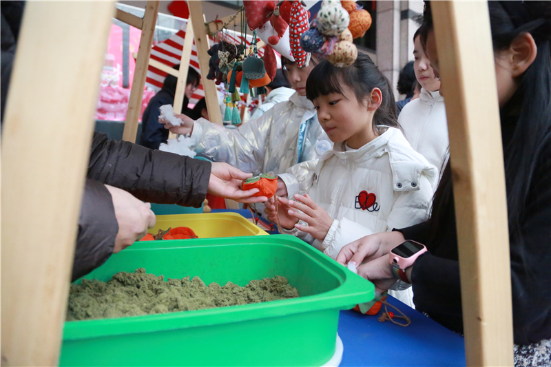 活動現場洋溢著濃濃的年味。在“民俗探趣·小年風情體驗”區域,多個攤位吸引了小朋友的目光,大家積極參與,沉浸式體驗傳統文化的獨特韻味,時而互動體驗,時而親手制作。