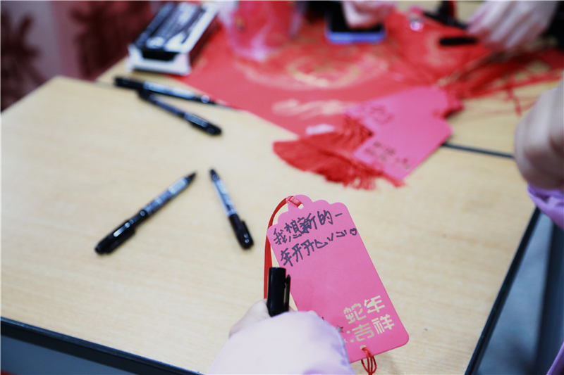 孩子們在卡片上寫下自己的新年愿望。人民網記者 龔莎攝