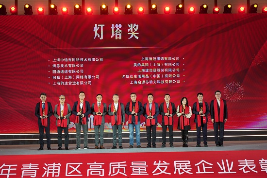 會上,還對人才引進優秀企業、優秀平臺企業、“制造業十強”“服務業十強”“高新技術十強”、“青云獎”“燈塔獎”企業代表進行了頒獎。全區高質量發展企業代表上海中通吉網絡技術有限公司、上海啟源芯動力科技有限公司作分享交流。